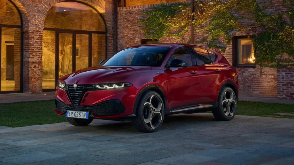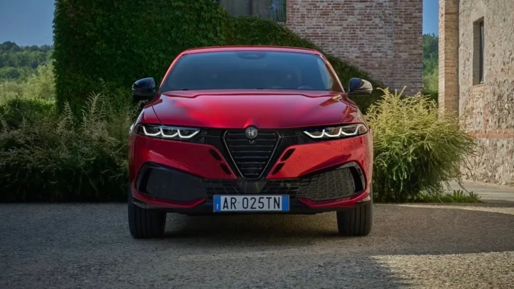 Hoewel de visuele veranderingen zich grotendeels beperken tot de neuspartij, legt Turijn graag de link met de 33 Stradale. Diens enigszins gewelfde scudetto-rooster oogt immers hetzelfde als op de opgefriste Tonale. Verder berust elke gelijkenis met die supercar op puur toeval.